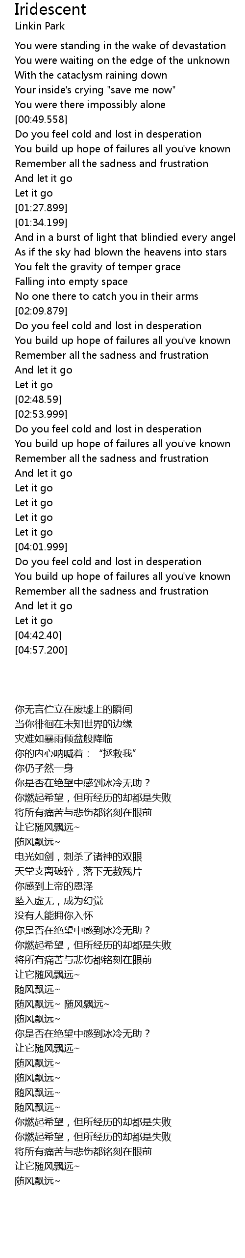 | [00:51.99] | Do you feel cold and lost in desperation |