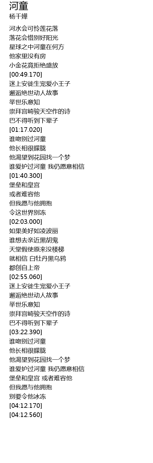 | [03:36.870] | 谁爱护过河童 我仍愿意相信 |