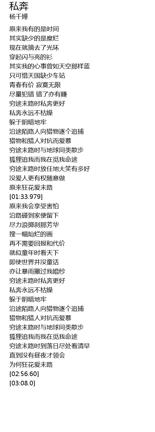 | [02:24.430] | 私奔永远不枯燥 |