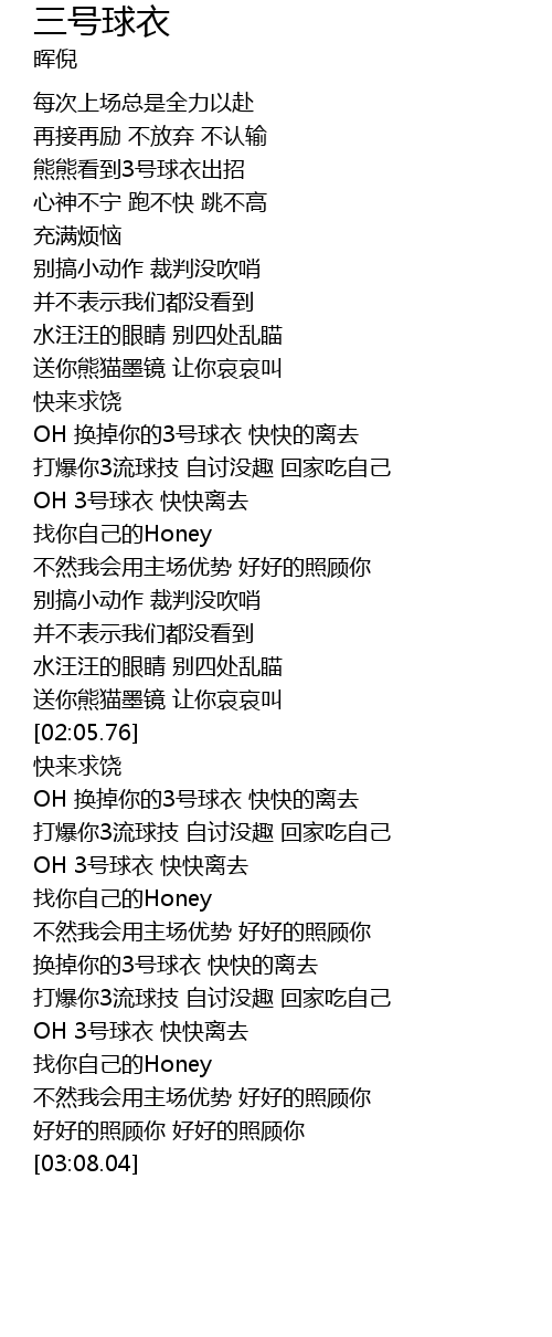 | [02:09.20] | OH 换掉你的3号球衣 快快的离去 |