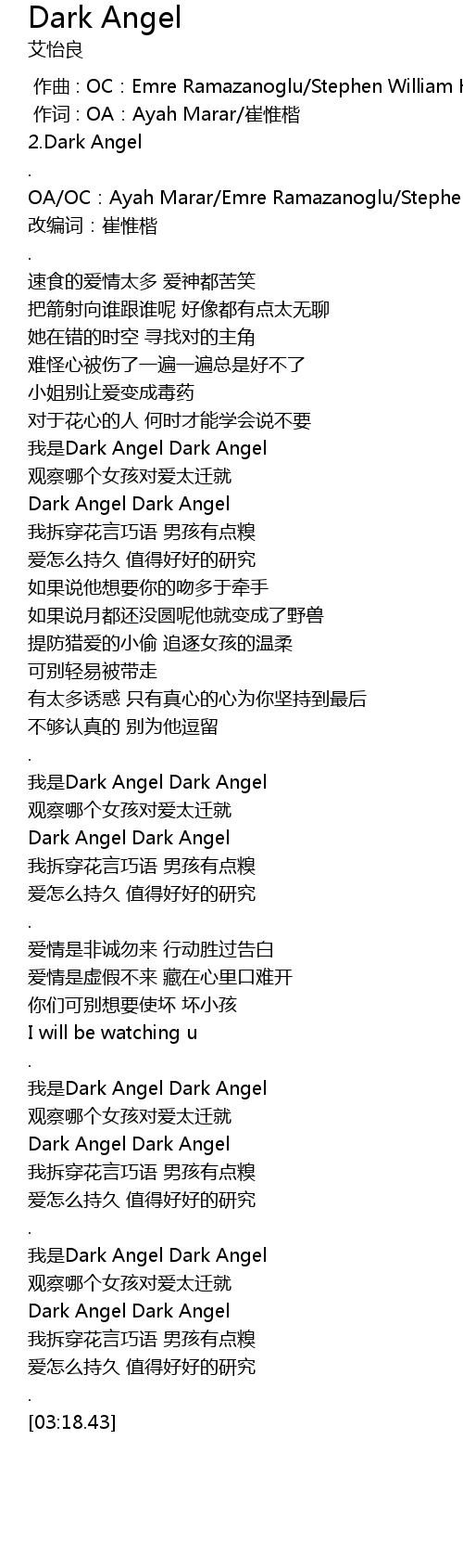 | [02:53.66] | wǒ shì Dark Angel Dark Angel |