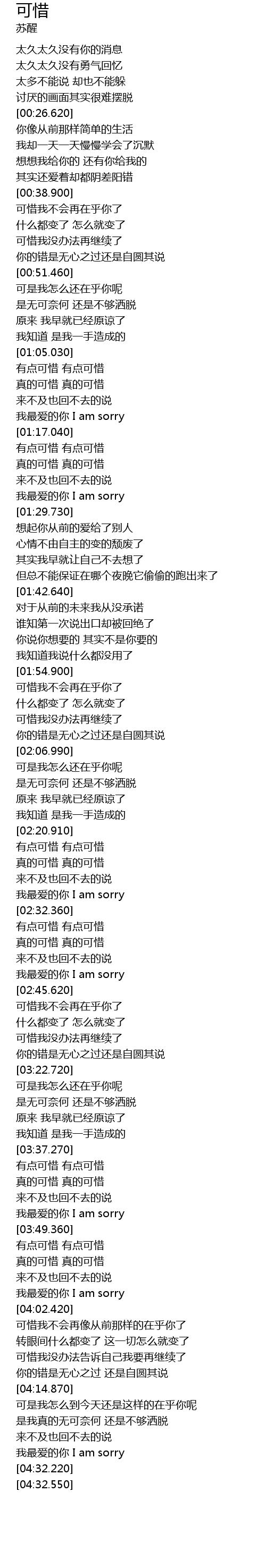 | [02:23.310] | 真的可惜 真的可惜 |