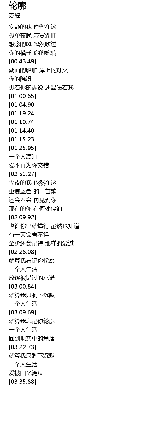 | [02:30.15][01:04.90] | 就算我忘记你轮廓 |