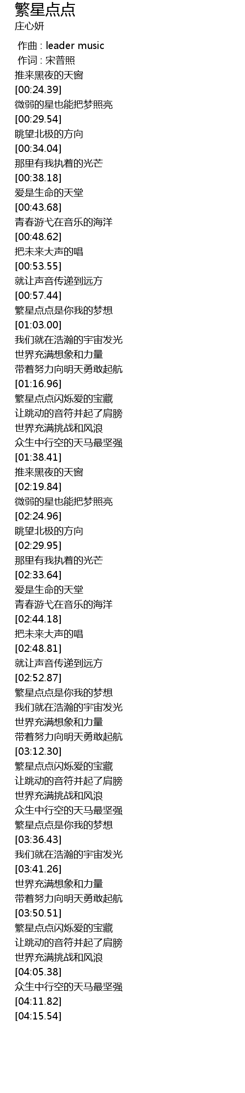 | [03:33.10] | 繁星点点是你我的梦想 |
