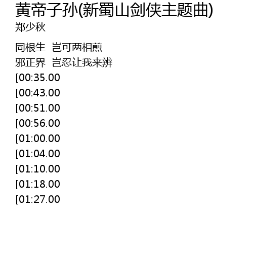 | [01:51.00][00:35.00] | 蜀山剑 千钧威力似雷电 |