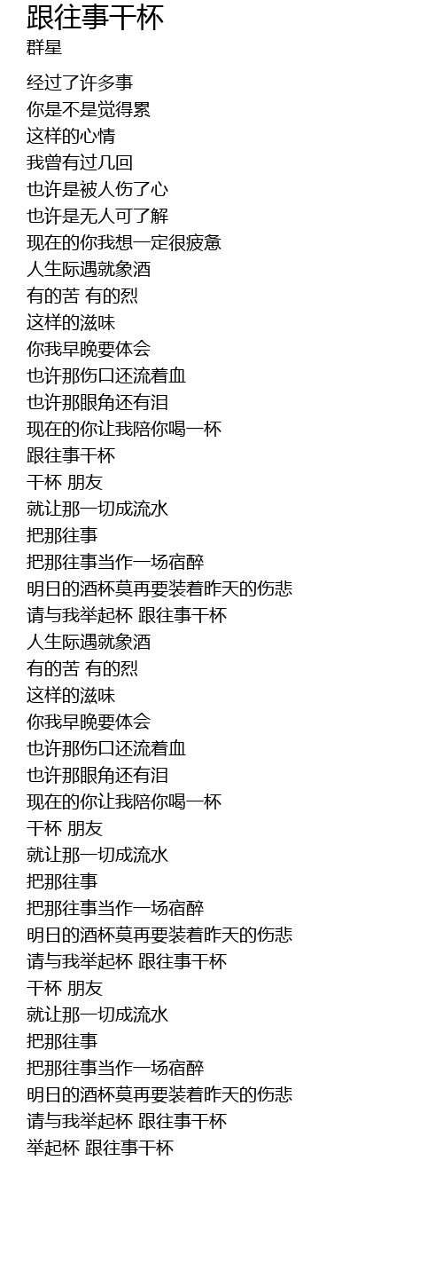 | [03:46.800] | 请与我举起杯 跟往事干杯 |