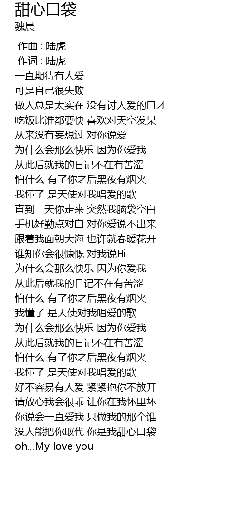 | [02:41.39] | 没人能把你取代 你是我甜心口袋 |