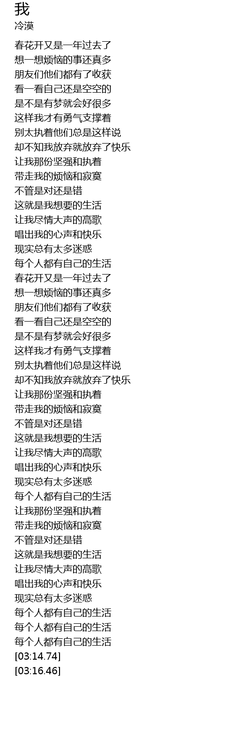 | [01:11.93] | 这就是我想要的生活 |