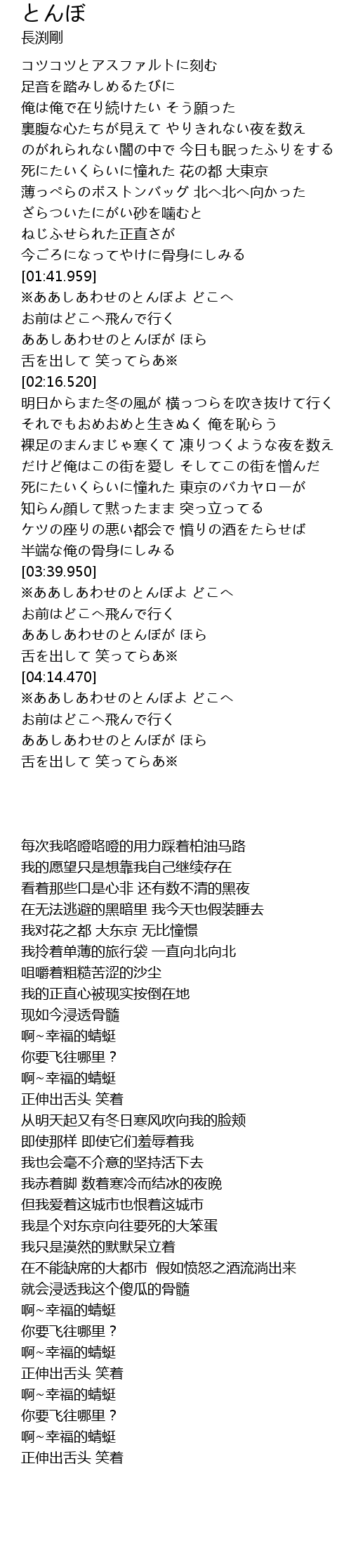 | [01:44.570] | ※ああしあわせのとんぼよ どこへ |