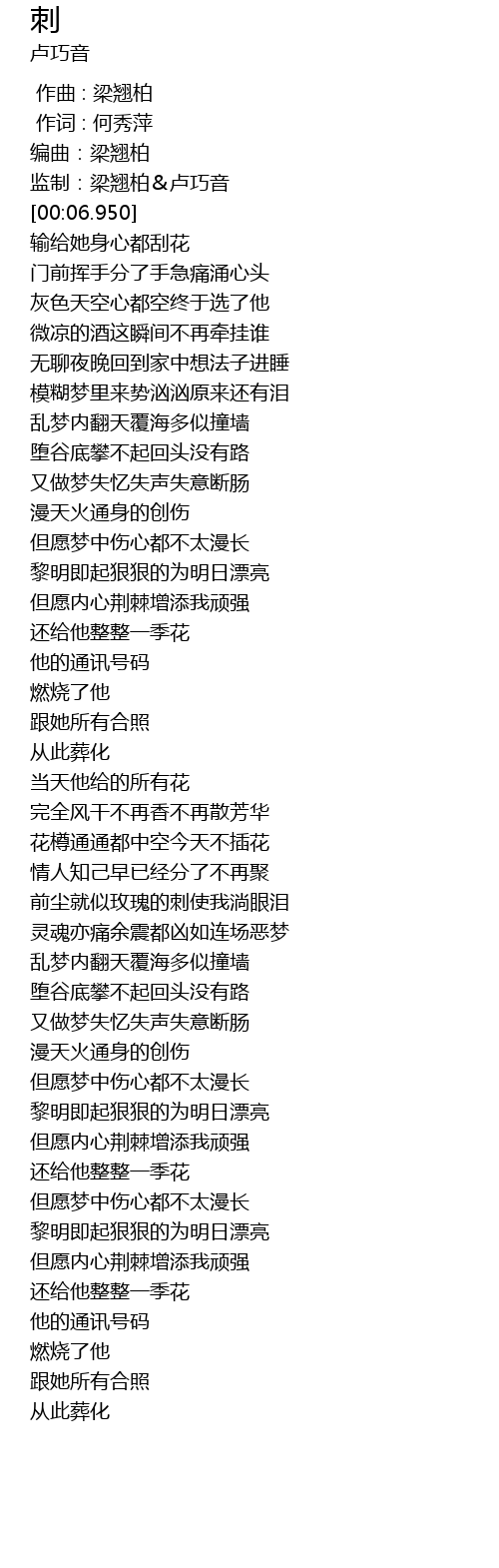 | [00:05.300] | 编曲:梁翘柏 |
