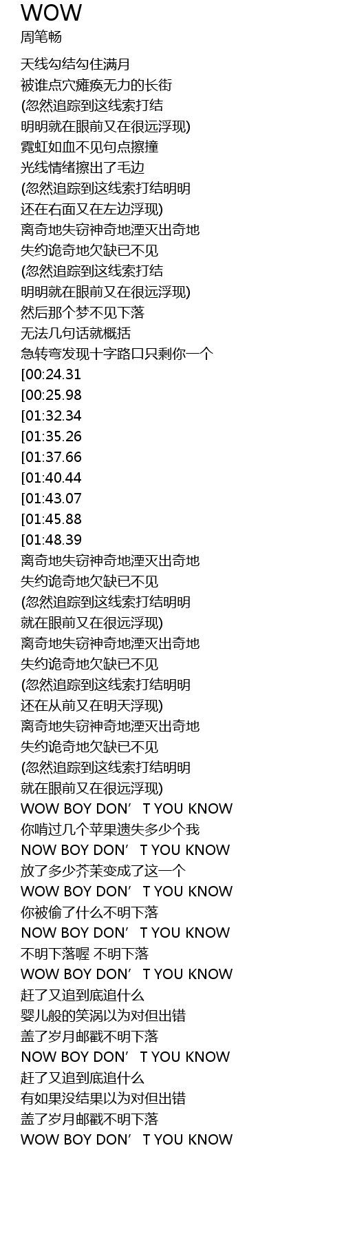 | [01:51.31] | WOW BOY DON’T YOU KNOW |