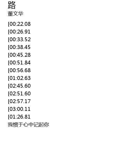 | [03:20.47][03:00.11][01:22.91] | 向着茫茫路口 |
