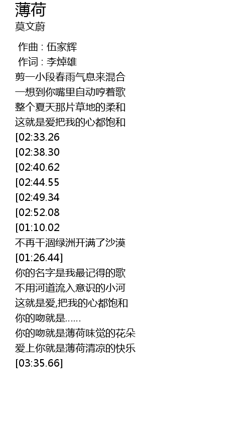 | [03:29.75] | 爱上你就是薄荷清凉的快乐 |