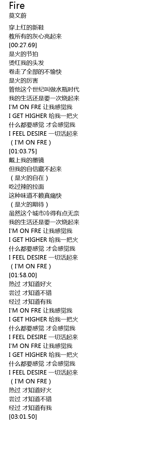 | [00:45.58] | I' M ON FRE ràng wǒ gǎn jué wǒ |