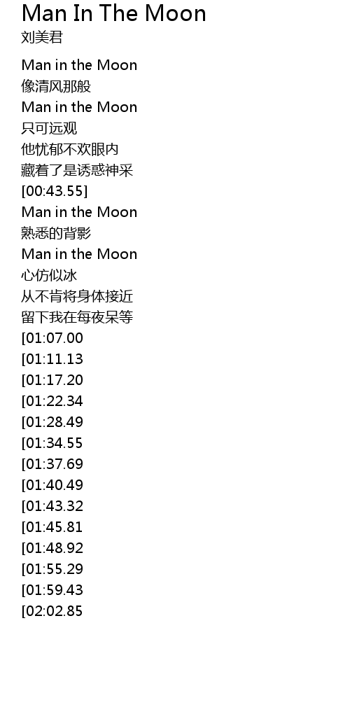 | [02:53.54][01:40.49] | Man in the Moon |