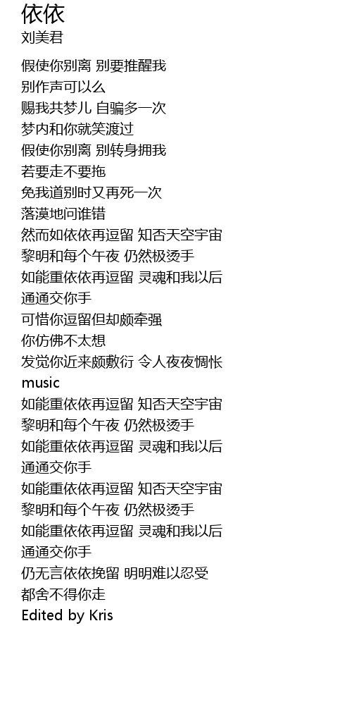| Song | 依依 |
