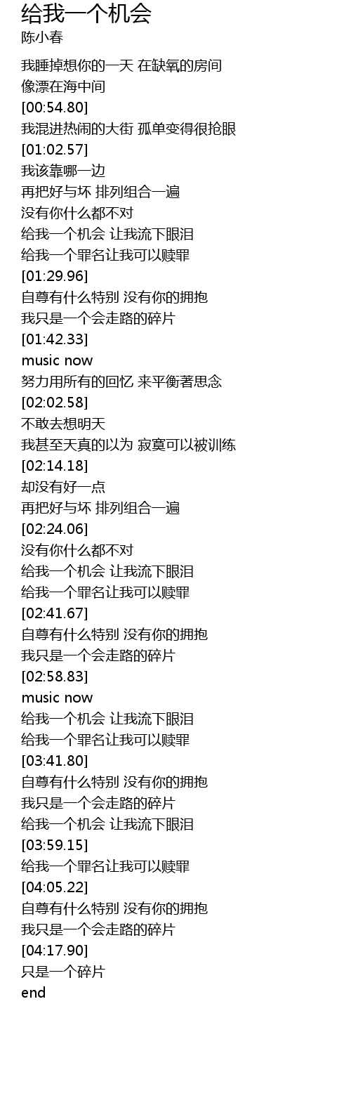 | [03:54.23] | 给我一个机会 让我流下眼泪 |