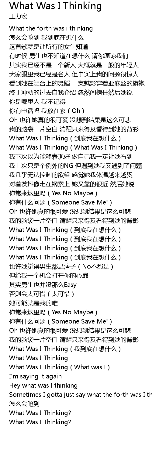 | [01:09.26] | What Was I Thinking(What Was I Thinking) |