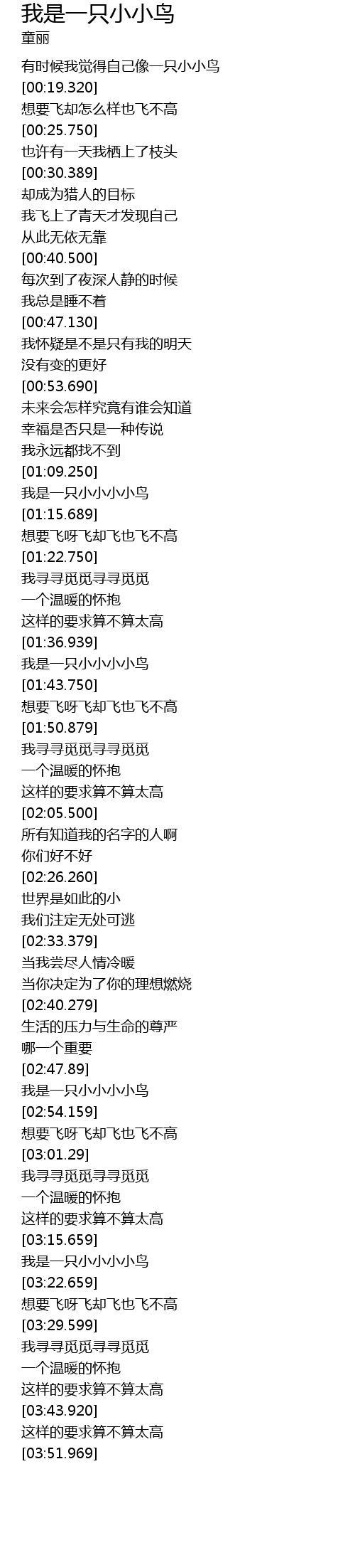 | [03:17.349] | wo shi yi zhi xiao xiao xiao xiao niao |