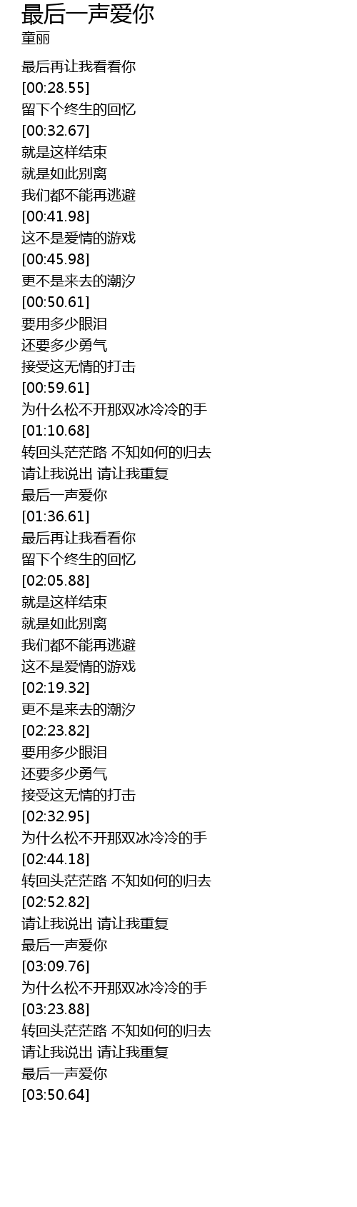 | [01:28.55] | zuì hòu yī shēng ài nǐ |