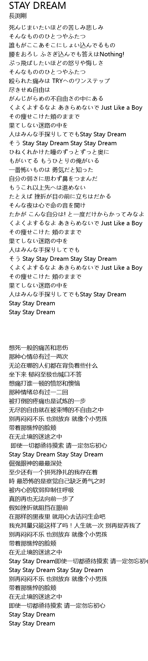 | [04:35.500] | Stay Stay Dream Stay Stay Dream |