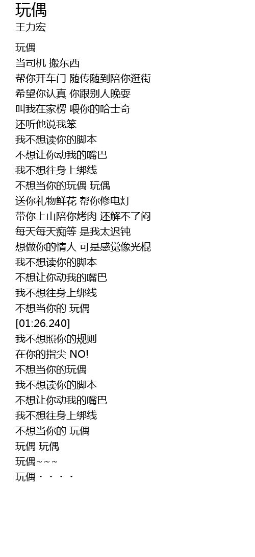 | [01:21.910] | 不想当你的 玩偶 |