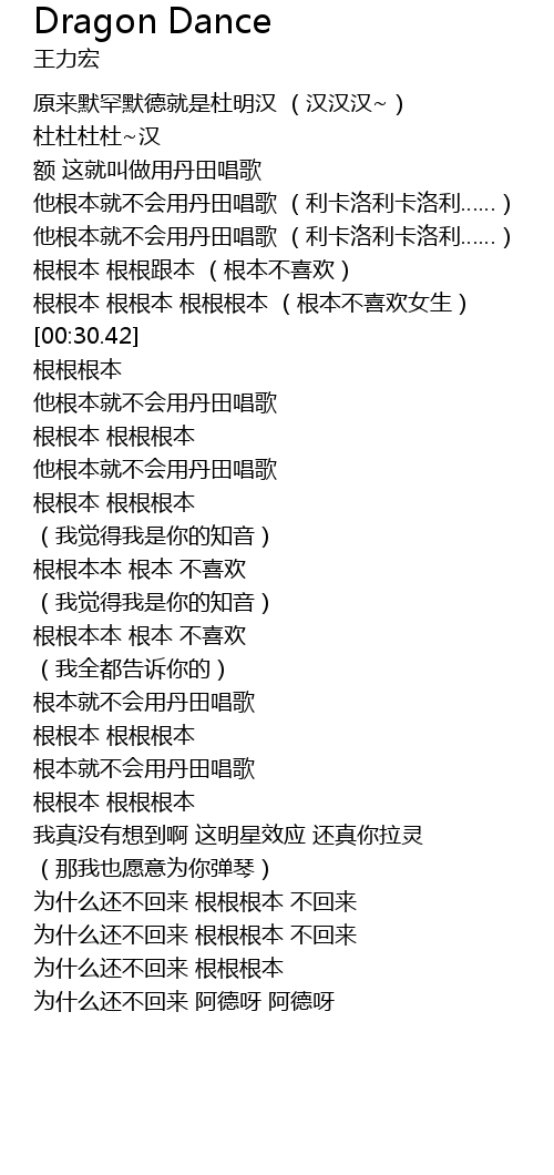 | [00:30.89] | gēn gēn gēn běn |