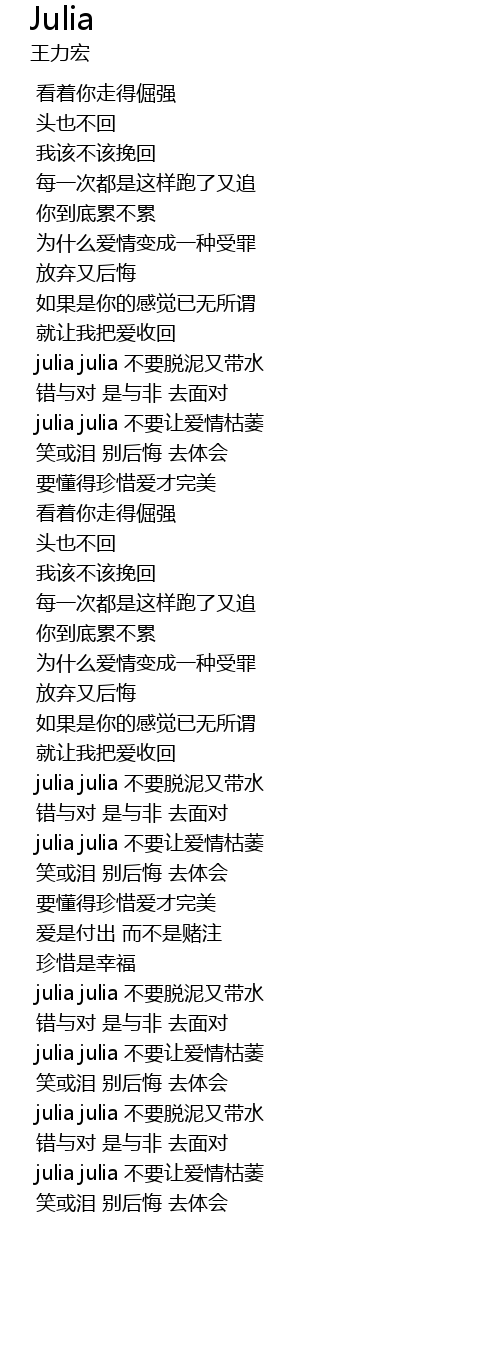 | [02:30.520] | julia julia 不要让爱情枯萎 |