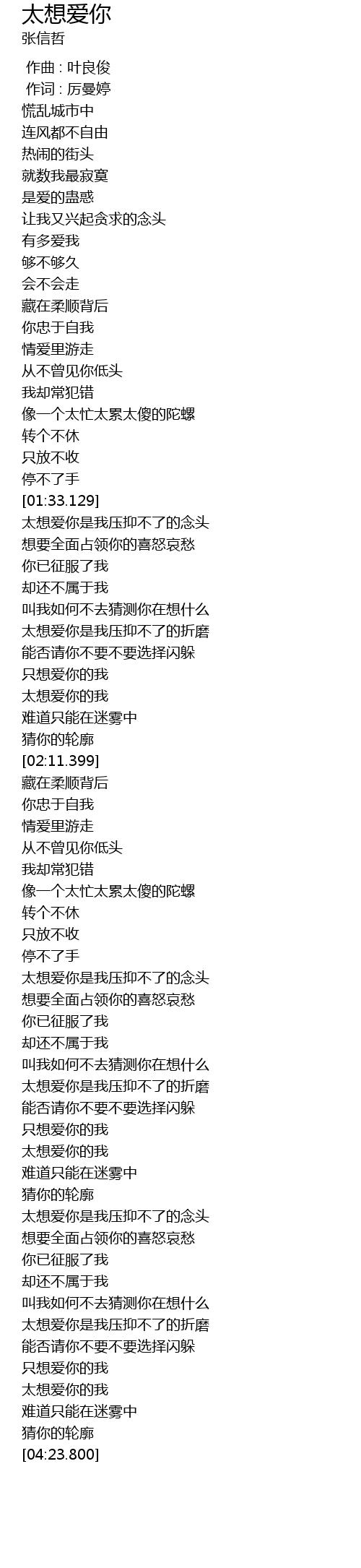 | [01:33.779] | 太想爱你是我压抑不了的念头 |