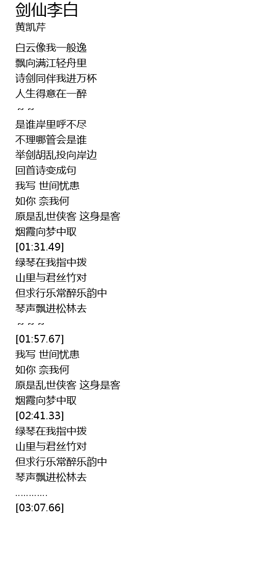 | [02:30.98] | 原是乱世侠客 这身是客 |