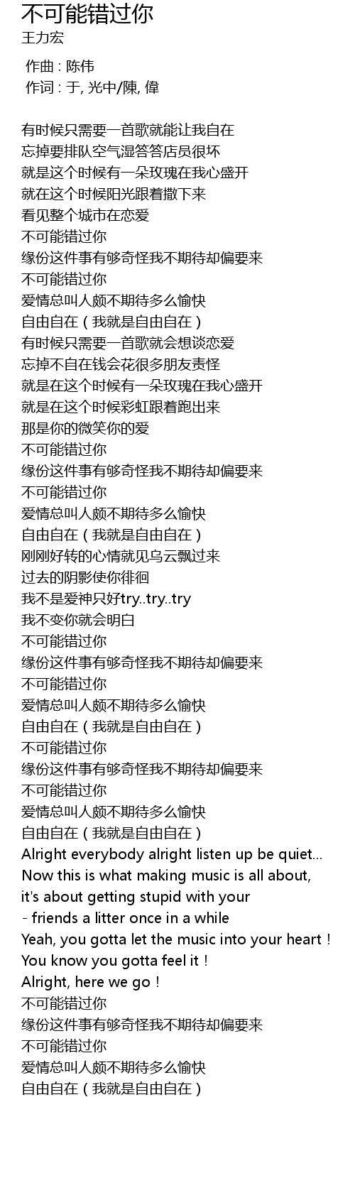 | [04:32.0] | 不可能错过你 |