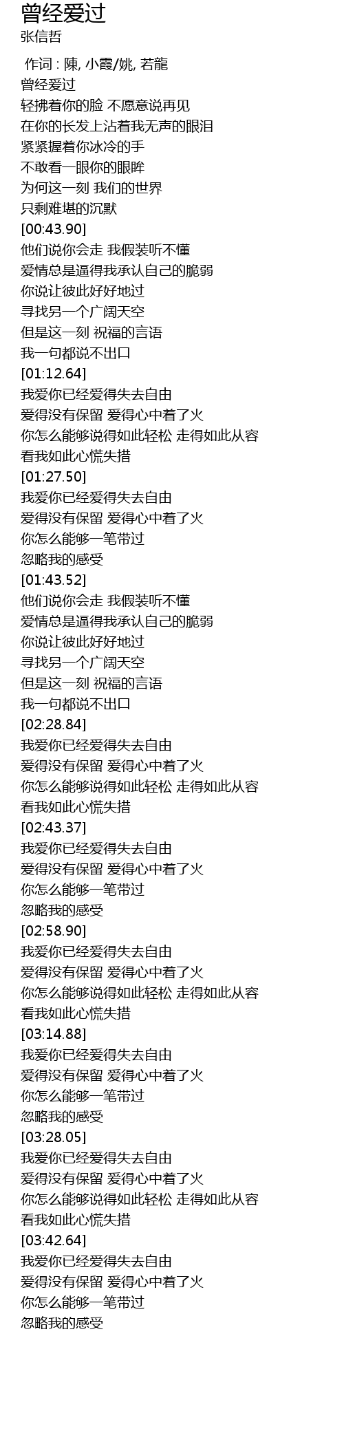 | [03:43.31] | 我爱你已经爱得失去自由 |
