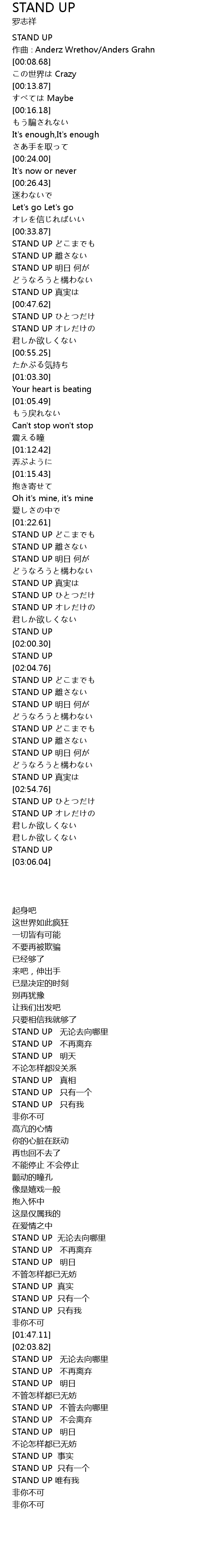 | [01:37.18] | STAND UP zhen shi |