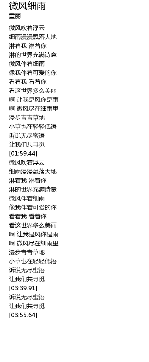 | [03:11.08] | 啊 微风尽在细雨里 |