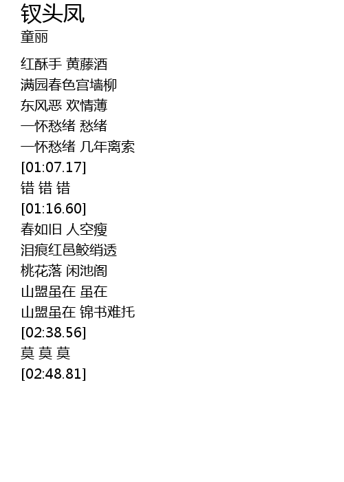 | [02:27.38] | 山盟虽在 锦书难托 |