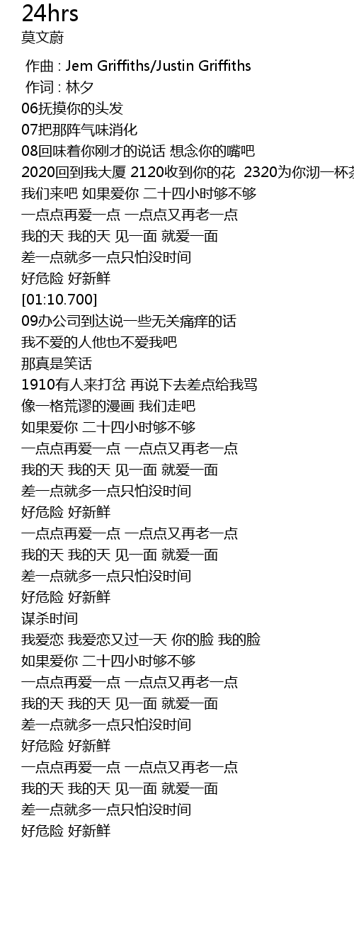 | [01:39.890] | 如果爱你 二十四小时够不够 |