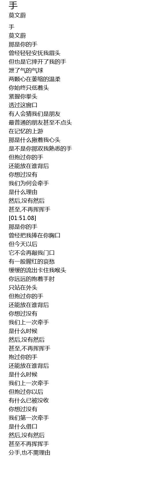 | [01:16.30] | 是不是你那双我熟悉的手 |