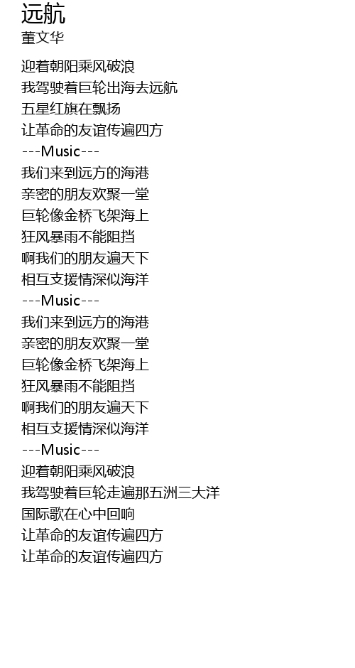 | [00:37.330] | 我驾驶着巨轮出海去远航 |