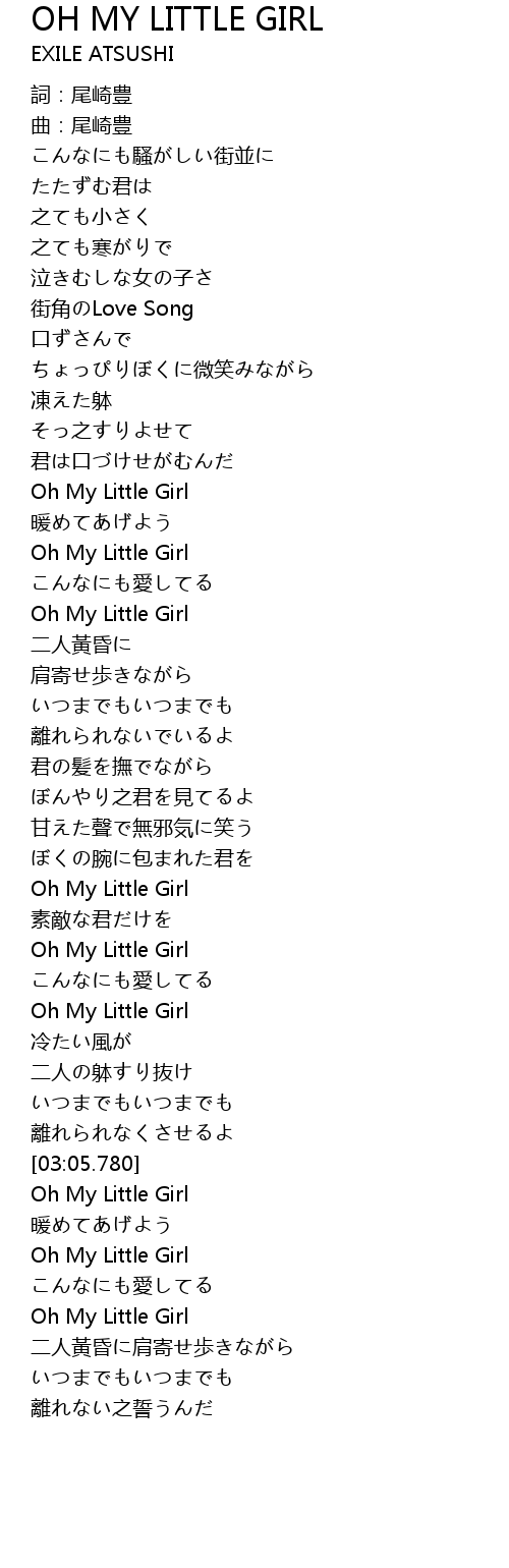 | [03:29.259] | 二人黃昏に肩寄せ歩きながら |