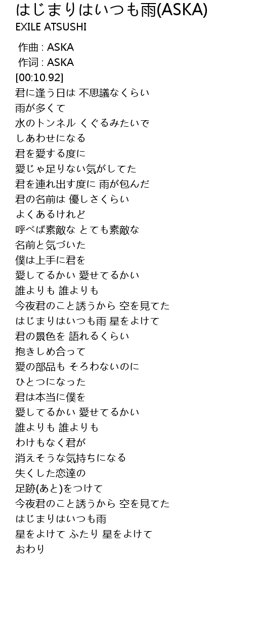| Song | はじまりはいつも雨(ASKA) |