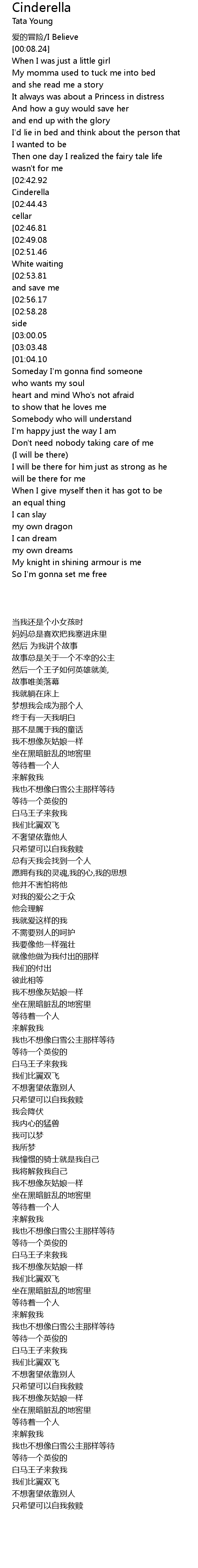 | [03:05.16][02:42.92][02:24.28][01:36.34][00:39.07] | I don' t wanna be like Cinderella |
