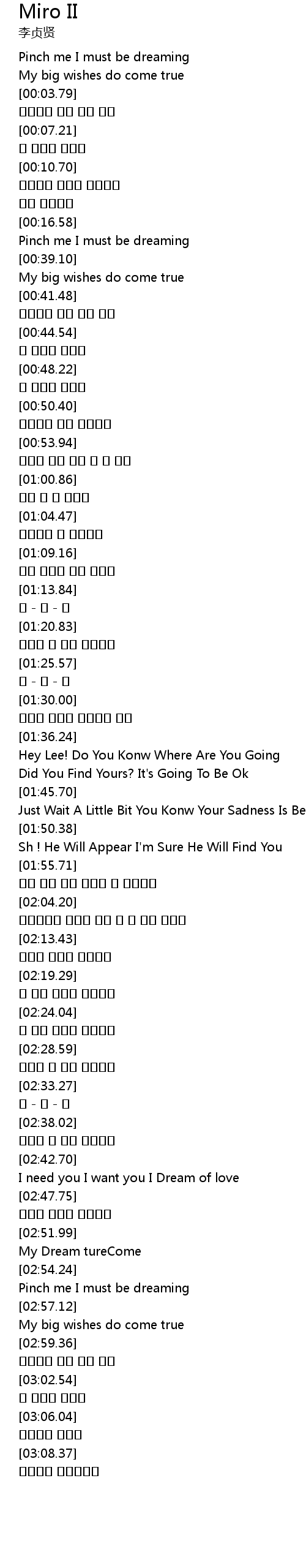 | [01:39.55] | Hey Lee! Do You Konw Where Are You Going |