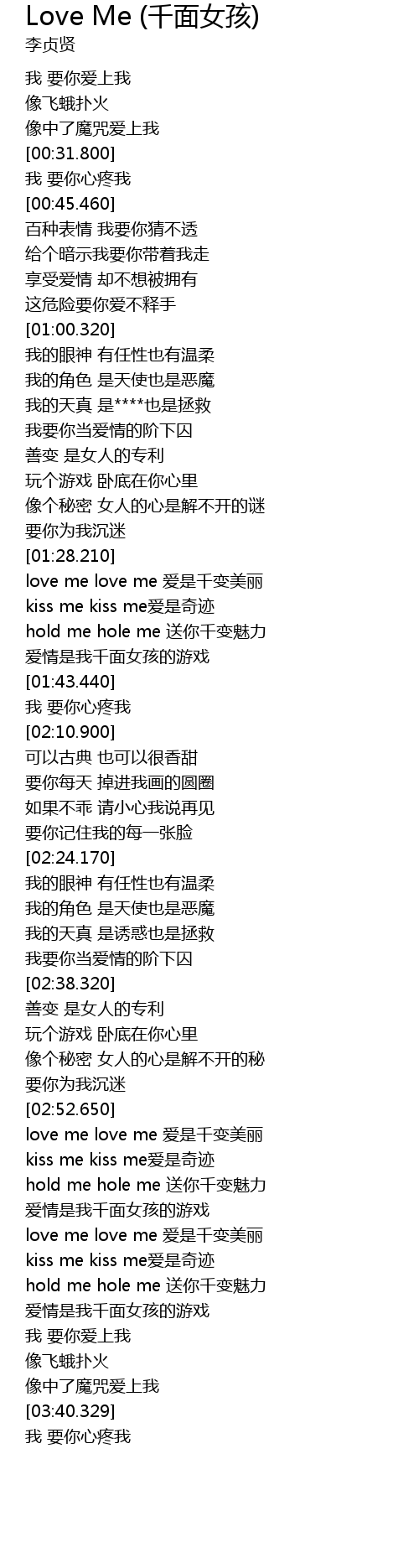 | [02:53.030] | love me love me 爱是千变美丽 |