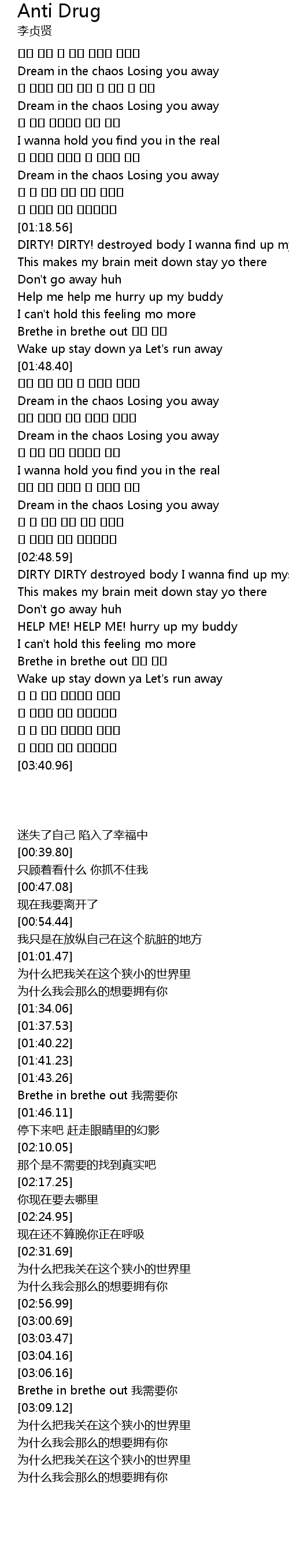 | [01:45.00] | Brethe in brethe out 니가 필요 |