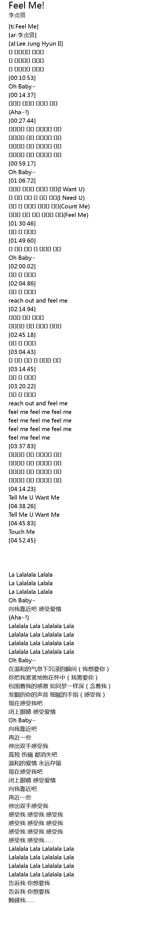 | [01:26.29] | 떨리는 나의 음성 섬세한 손길(Feel Me) |