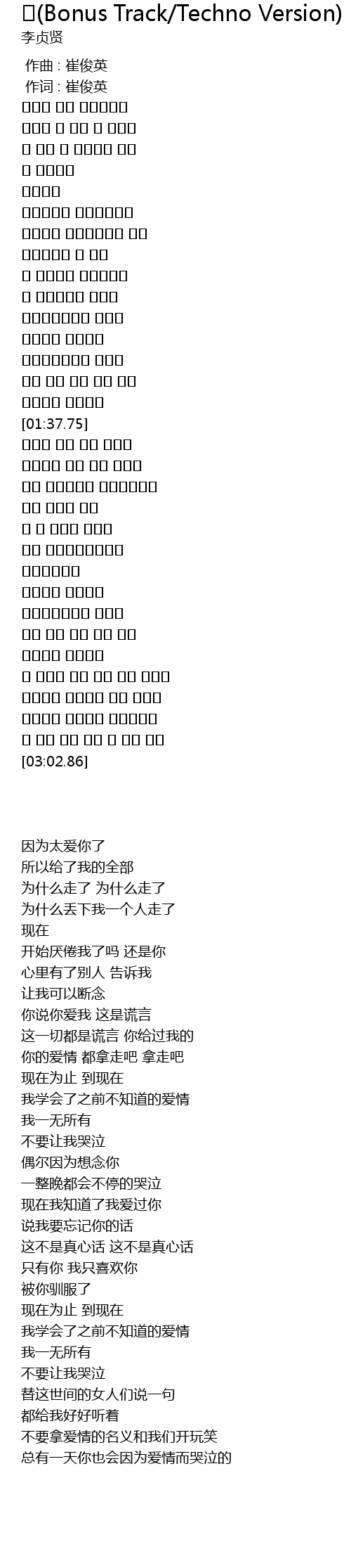 | [00:44.16] | 너만을 너무 사랑했었어 |