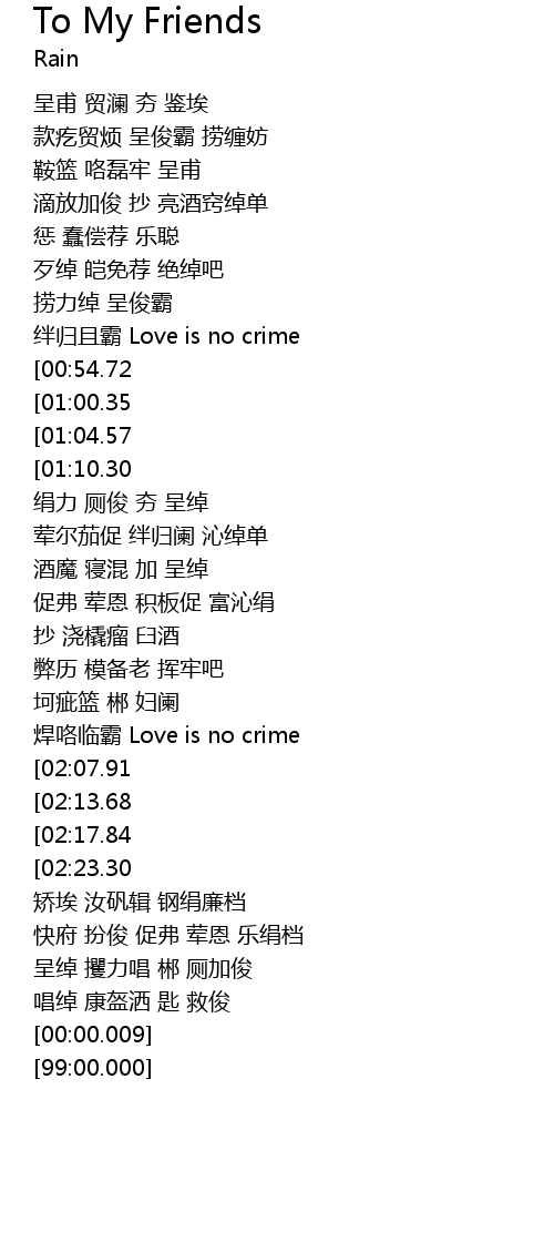| [02:00.94] | hàn gē lín bà Love is no crime |