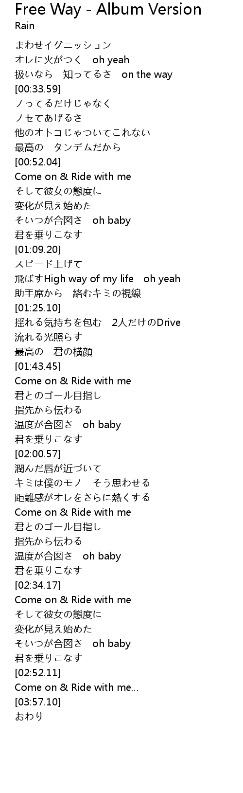 | [01:13.80] | 飛ばすHigh way of my life oh yeah |