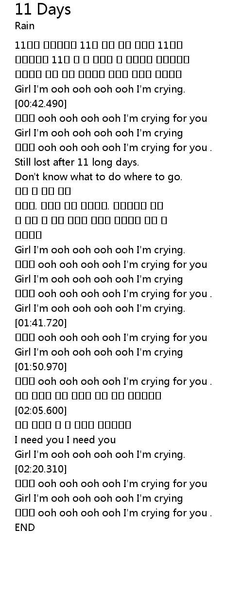 | [02:31.250] | 이렇게 ooh ooh ooh ooh I'm crying for you . |
