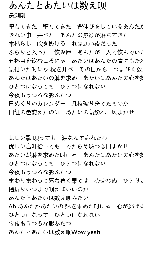 | Ah あんたがあたいの 躰を求めた时にゃ 心が逃げる | |